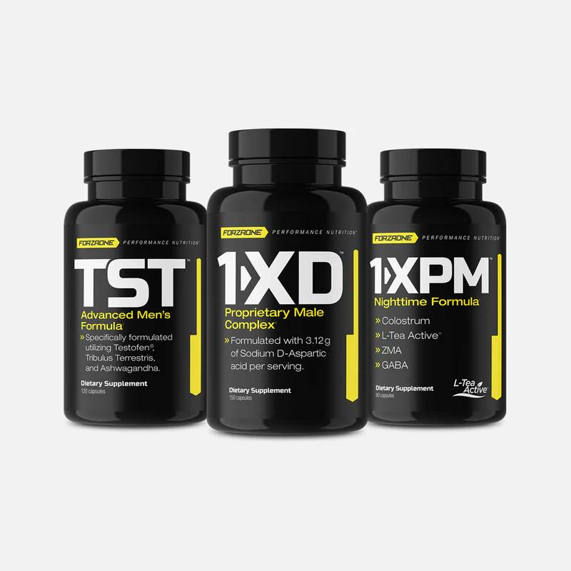 The sleek design of the bottles, set against a pristine white background, not only emphasizes the quality of the product but also reflects the purity of the ingredients within. This stack is ideal for those seeking to optimize their physical performance, boost their confidence, and promote a balanced lifestyle.